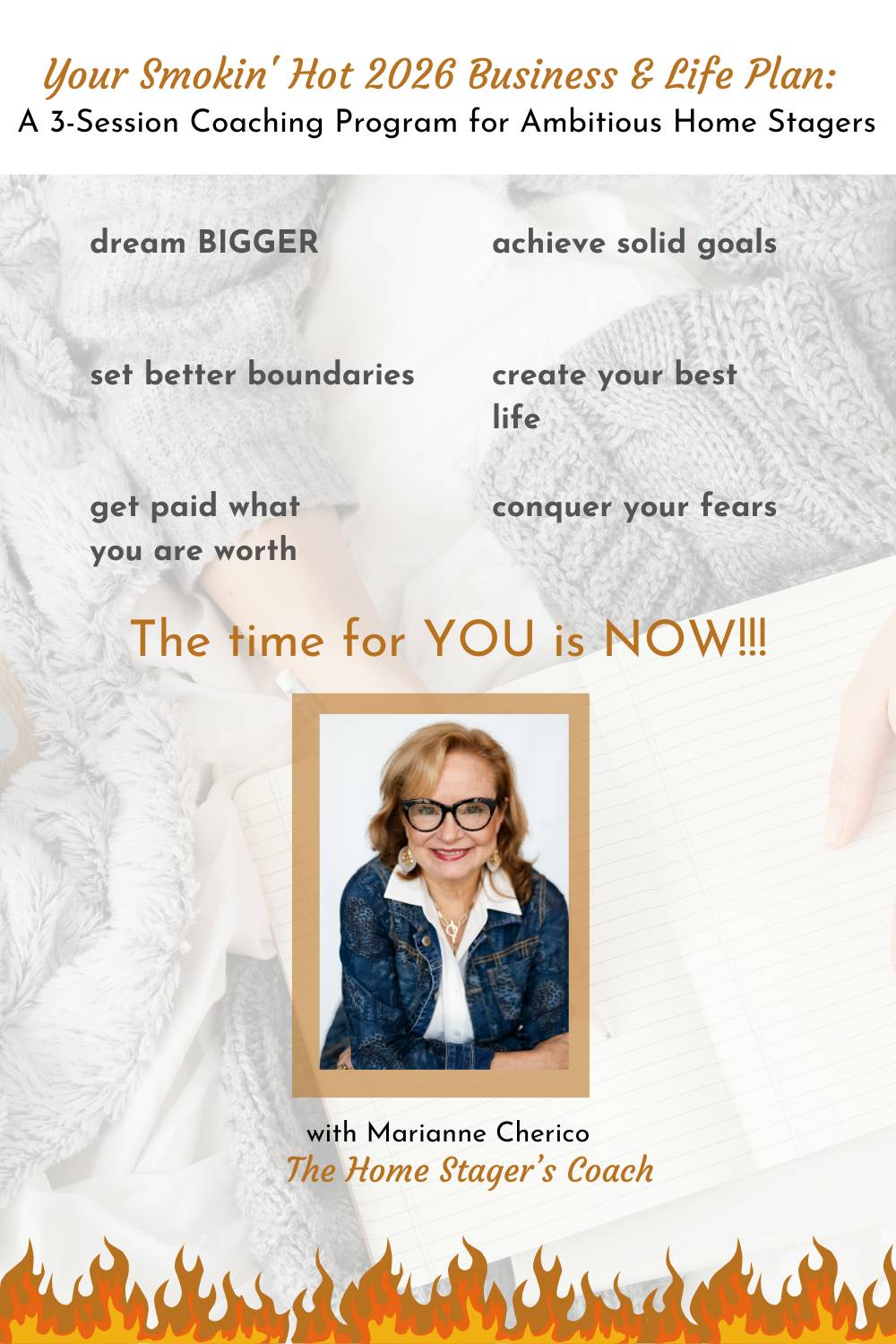 Take your Home Staging business to new heights with this powerful 3 part coaching program designed specifically for ambitious Home Stagers ready to build a business and life that sizzles with success.